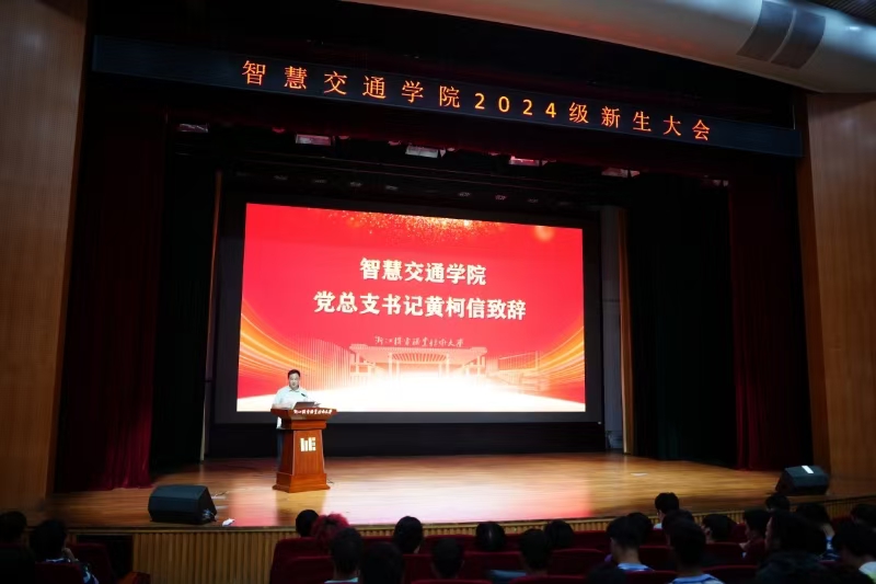 智慧交通学院党总支书记黄柯信首先代表学院全体师生,向新入学的同学们致以最诚挚的欢迎。他指出,你们经历了高考的洗礼,加入了智慧交通学院这个大家庭,这份缘分值得大家共同珍惜。其次又详细介绍了学院的办学历史、师资力量、专业设置及教学成果,学院致力于培养具有深厚文化底蕴、精湛技术技能和创新精神的复合型人才。他鼓励同学们要珍惜在学院的时光,努力学习专业知识,积极参与实践活动,不断提升自己的综合素质和创新能力。