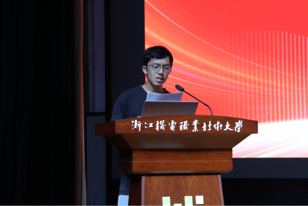 汽智2433班学生彭路遥代表全院新生向师长们表示了感谢。他提到,大学是人生中的一个重要转折点,不仅是学习专业知识的地方,更是一个锻炼能力、塑造人格、拓展视野的广阔舞台。同时他对同学们提出倡议,希望大家珍惜在大学的时光,学习上勤奋刻苦,勇于探索。生活中乐观向上,乐于助人。在未来积极的为母校争光,为社会贡献自己的力量。