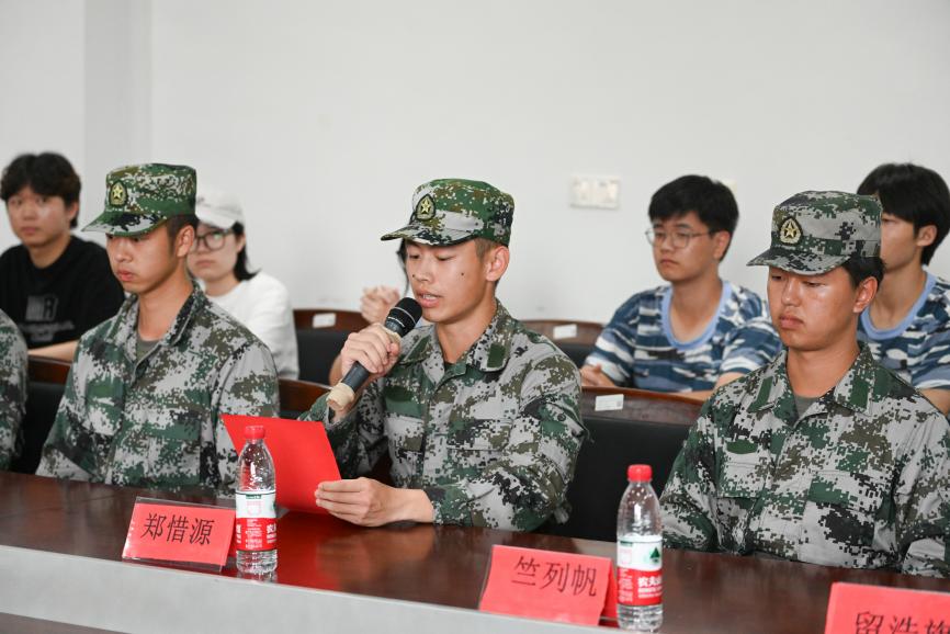 四营八连教官郑惜源作为优秀教官代表分享了军训期间的带训感受,并重申军训的意义和使命:军训不仅仅是一次身体上的锻炼,更是一次心灵上的洗礼。激励新生们在未来的道路上勇敢前行,传承军人般的坚毅和担当,希望同学们把军训成果转化为学习动力,坚定信心、锤炼意志,不断提升自我综合素质。