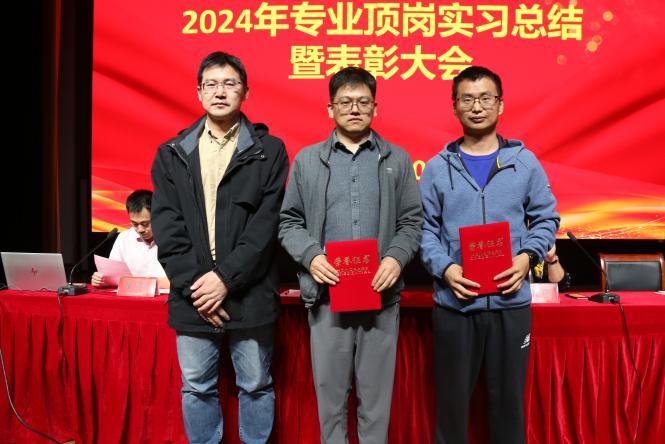 在顶岗实习的历练中,众多学生展现了吃苦耐劳、脚踏实地、敬业爱岗的优秀品质。为表彰先进,激励更多学生积极参与并投身于顶岗实习,大会隆重揭晓了企业实践优秀指导教师、优秀教研室、学生标兵及优秀学员名单。蒋立正给获奖教师及教研室代表颁发荣誉证书,教务处周平老师为优秀学员及学生标兵授奖,并和大家合影留念。