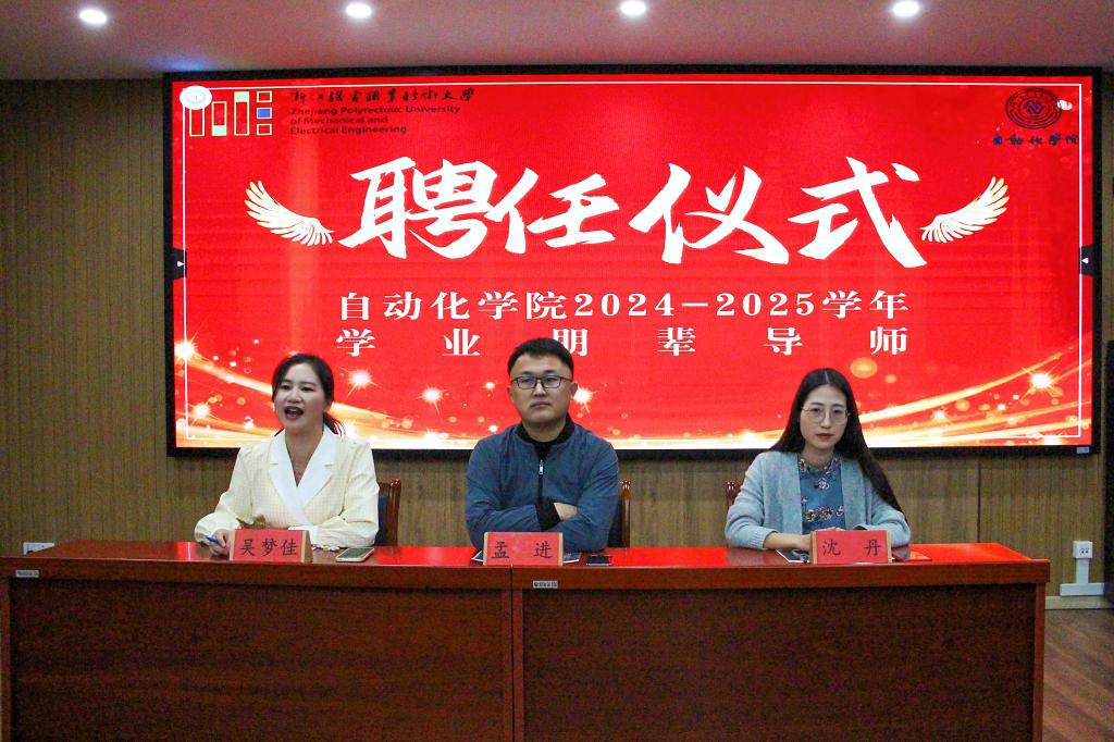为促进学生间的相互学习与成长,进一步做好学业帮扶工作,自动化学院积极开展学业朋辈导师选聘工作。11月6日晚,“学业朋辈导师”聘任仪式于海宁校区18-201隆重举行。学院学工办主任孟进、辅导员吴梦佳、沈丹及各受聘同学参加会议。