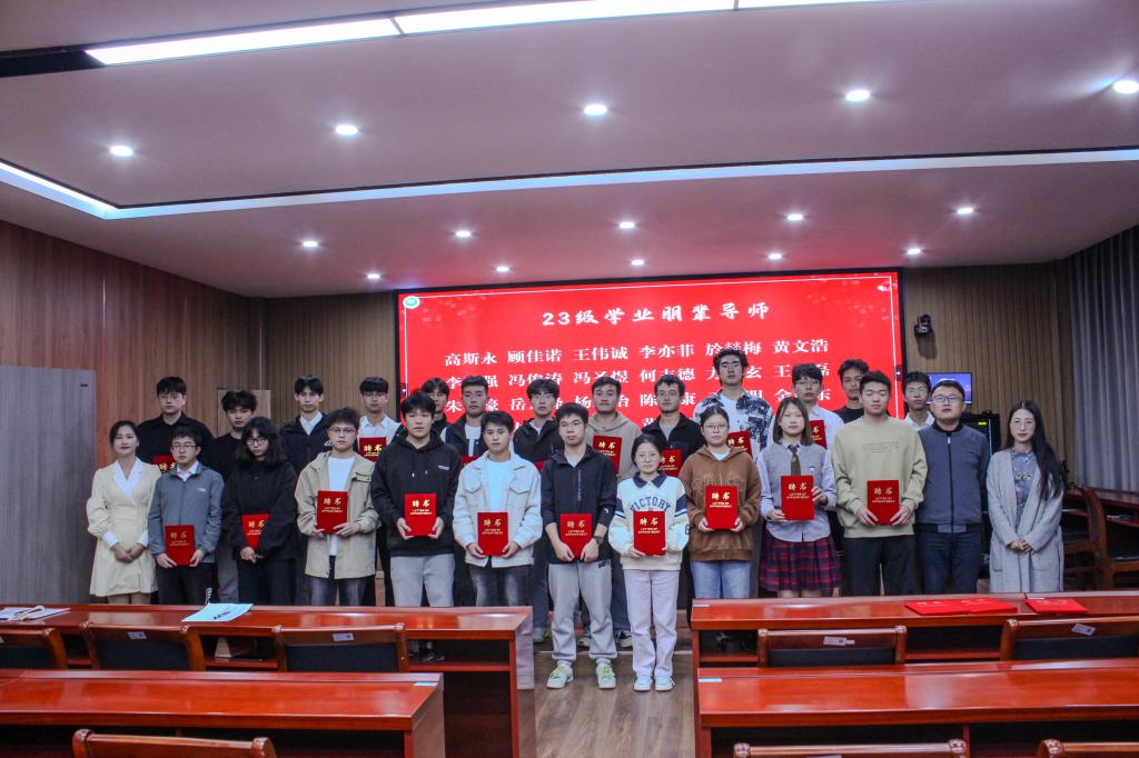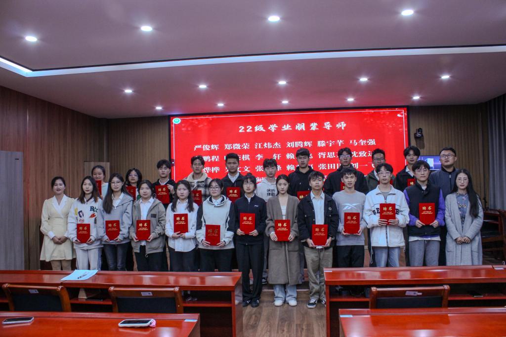 最后,与会老师共同为新任朋辈导师成员们依次颁发聘书并合影留念。受聘的朋辈导师纷纷表示,他们非常荣幸能够担任这一职务,并承诺将认真履行职责,积极为同学们提供学业指导和帮助。