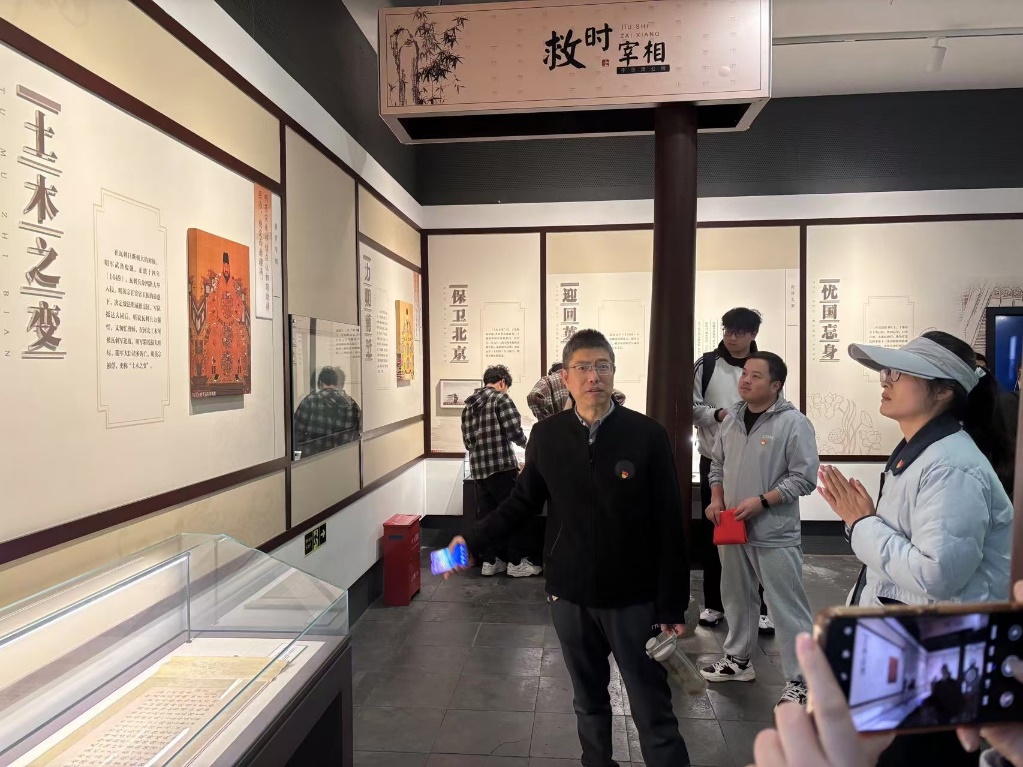 在秋日的暖阳下,支部成员们怀着敬仰的心情走进于谦祠,这里不仅承载着深厚的历史文化底蕴,更是廉洁教育的重要阵地。活动伊始,党支部书记梁启来简要介绍了此次活动的目的和意义,强调廉洁自律对于党员成长和学校发展的重要性。随后,在专业讲解员的引导下,支部成员们逐一参观了于谦祠内的各个展厅,详细听取了关于于谦生平事迹、廉洁奉公精神的讲解。