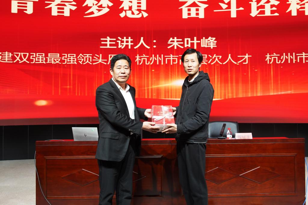 为深入学习贯彻党的二十届三中全会精神,坚定青年学生强国复兴的理想信念,不忘初心,砥砺前行,11月28日,智能制造学院特邀杭州市党建双强最强领头雁、杭州市高层次人才、杭州市教育追梦人朱叶峰书记为学生党员、入党积极分子讲党课。学院各学生党支部书记、80余名学生党员、入党积极分子参加活动,讲座由党总支书记楼建忠主持。