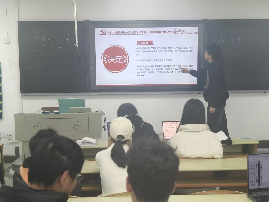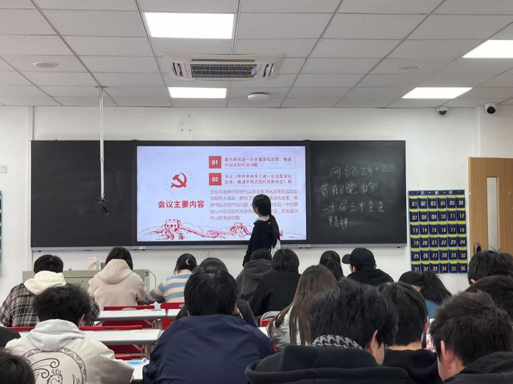 为深入学习贯彻党的二十届三中全会精神,引导学生全面理解把握会议的重要意义和主要内容,进一步增强学生的政治认同、理论自信和行动自觉,2024年11月末,现代信息技术学院组织全体班级开展“学习贯彻党的二十届三中全会精神”主题班会。