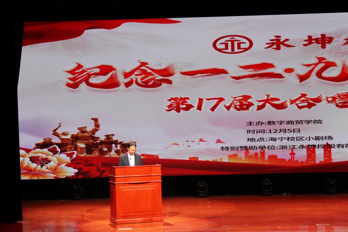 程勤华强调,回望89年前那场著名的抗日救亡爱国运动,一曲曲壮歌撼人心魄,一幅幅画卷荡气回肠,这是中华民族和中国人民的宝贵精神财富,每一位青年学子都应深刻铭记并将其精神传承下去。最后,程勤华宣布数字商贸学院“永坤杯”纪念“一二·九”运动 89 周年暨第十七届大合唱比正式开始!