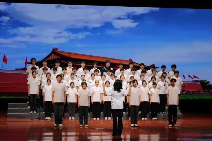 在历史长河中,共产党是新中国诞生的中流砥柱,冲破黑暗,引向光明。党的光辉如长明灯塔,引领我们奋勇向前。让我们在激昂旋律里铭记党恩,坚守初心,于新时代砥砺奋进,共赴光辉未来。
