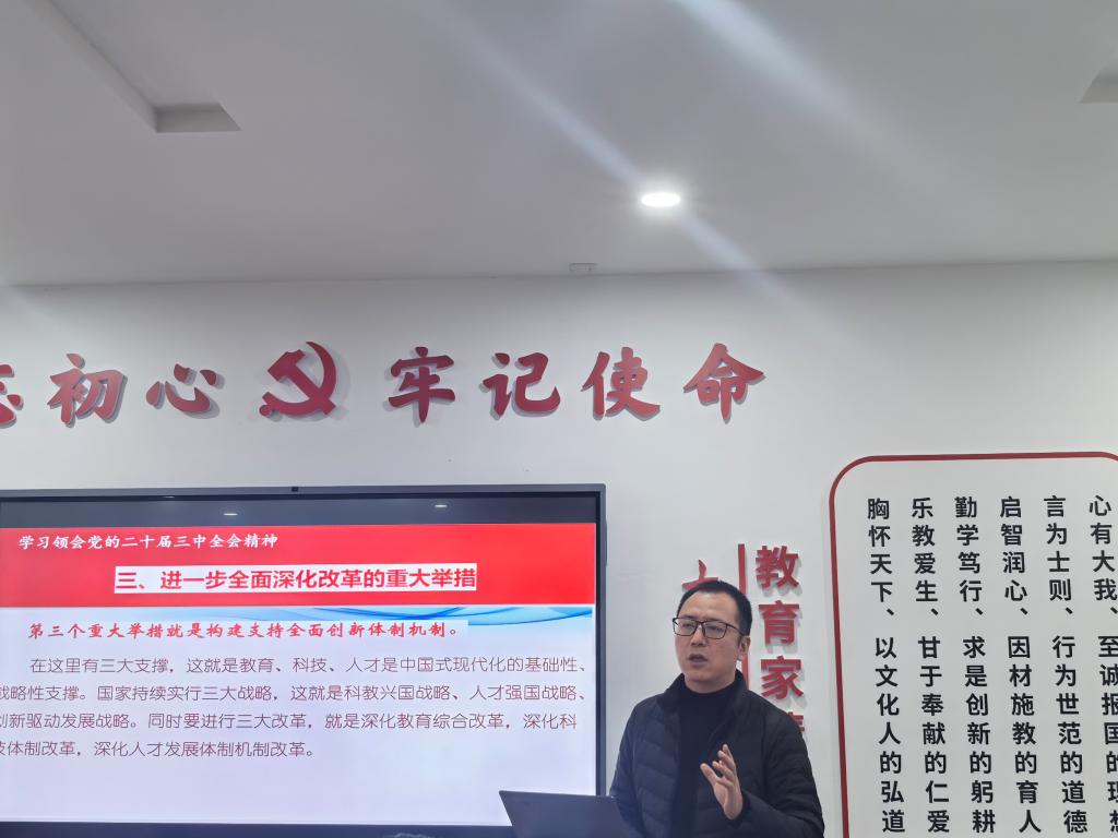 会议伊始,符强以《高举改革开放伟大旗帜 以中国式现代化全面推进中华民族伟大复兴》为题,带领全体教师深入学习党的二十届三中全会精神,并结合学院工作提出具体要求。他强调,全体教师要深入领会全会精神,明确改革方向、把握核心要义、指导教育实践,要以勇于创新、锐意进取的精神状态,全力投入到双高建设、本科专业建设、平安校园创建工作当中,为学院高质量发展共同努力。