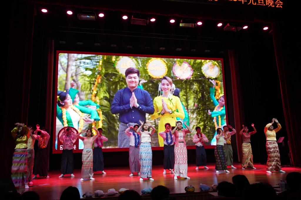 舞歌跨越文化,将彼此紧密相连。晚会特别邀请了国际教育学院的缅甸留学生舞蹈队带来缅甸歌舞《新年快乐》,带领观众一起领略异域风情的欢乐天地。来自国际教育学院其他三位歌手的《歌曲串烧》更是引得台下掌声连连。跨越国界与学院的表演,展现了不同艺术文化的碰撞与融合。