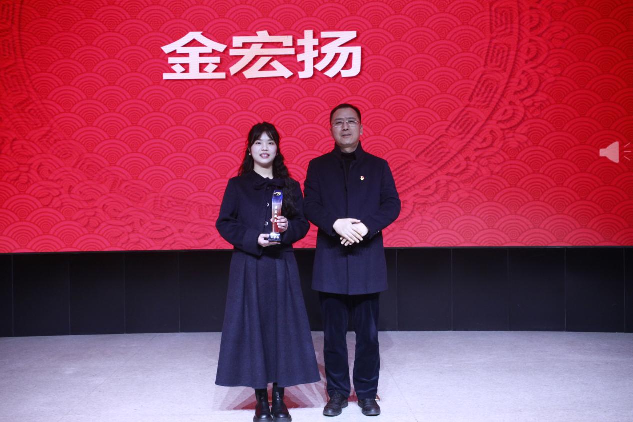 每个人都有自己的天赋,每个人都有自己的舞台,向观众展示自己最璀璨的一面,创意设计学院鼓励学生多方面发展,为此设立了“最美文体人”“最美志愿者”“最美校友”“最美形象代言人”“最美廉洁代言人”等奖项,表彰他们的勇气与智慧,在各自的舞台上发光发热。今年“最美校友”获得者金宏杨校友就今年获得创新大赛国金作品进行现场路演展示。在场同学深受震撼和鼓舞。