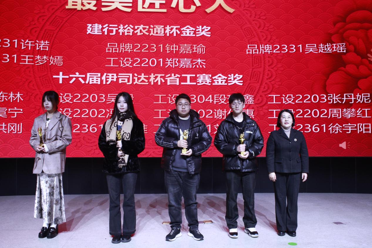每年在各种各样的技能竞赛中都有我们最美学子们的身影,学生们在赛场上展示自己的思维与智慧,本次典礼特设了“最美匠心人”的荣誉。创意设计学院为这些获得互联网国金、多媒体大赛、浙江省大学生工业设计竞赛、建行裕农通杯乡村振兴竞赛等的代表进行了荣誉颁授。工业设计竞赛获奖作品代表还向在场嘉宾进行了作品的展示与介绍,让观众们看到他们的努力成果。