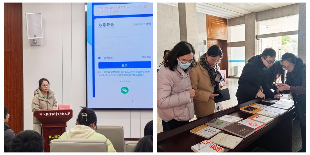 活动现场,图书馆还为师生开放了CNKI中国知网AI学术研究助手和AI智能写作的试用功能,并精心挑选了科研项目申报与论文写作的主题书籍供师生现场借阅。