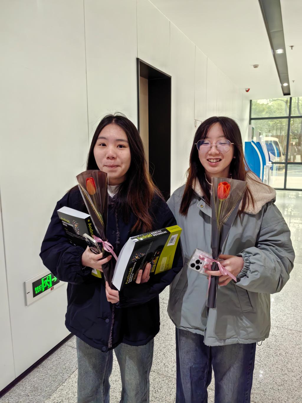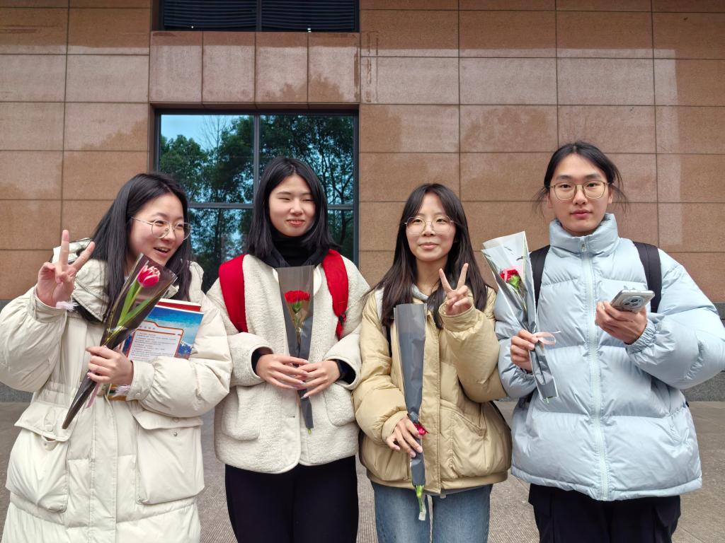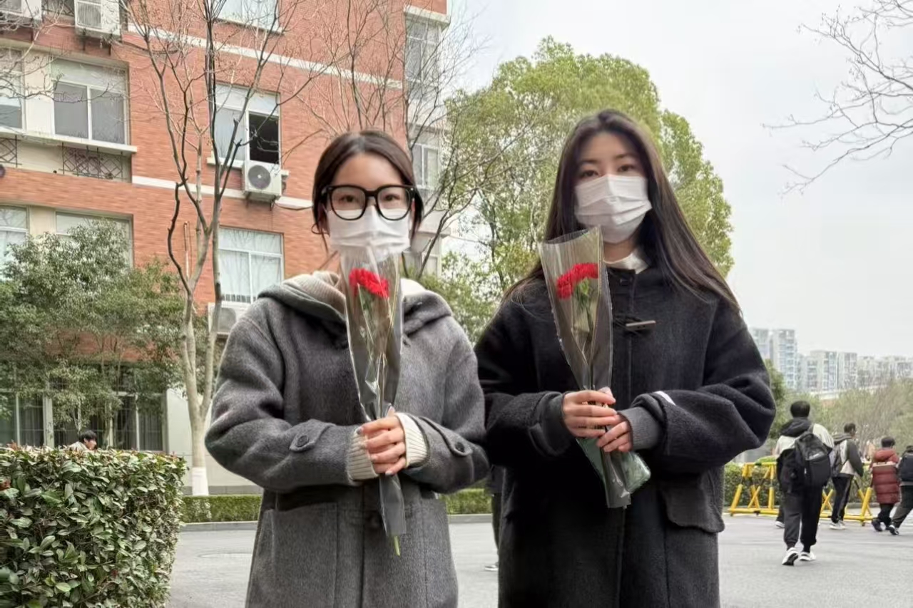 上午10点,随着活动正式开始,学生们手持精心包装的花束,送向各自心中的“女神”。每一束鲜花背后,都藏着送花者对女生的尊重、欣赏与祝福。有的花束中夹着匿名小卡片,上面写满了温馨的话语与美好的祝愿,让这份惊喜更加贴心与难忘。