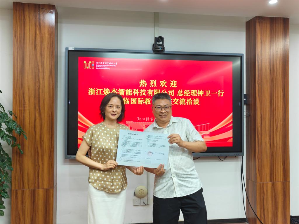 2025年6月11日,浙江焕杰科技有限公司与浙江机电职业技术大学国际教育学院在校企合作领域迈出坚实步伐。焕杰科技钟卫经理、刘丰副总经理及钟杰技术员一行三人赴国际教育学院,与学院党总支书记高水琴、学工办主任黄熠、智能装备教研室支部专任教师金杜挺等展开深入交流,并正式签署校企合作协议,共同开启产教融合新篇章。