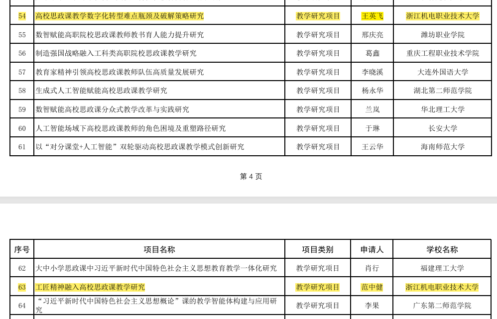 9月25日,教育部社科司2025年度高校思想政治理论课教师研究专项一般项目评审结果进行公示,我校马克思主义学院王英飞老师主持的《高校思政课教学数字化转型难点瓶颈及破解策略研究》、范中健老师主持的《工匠精神融入高校思政课教学研究》课题成功立项。
