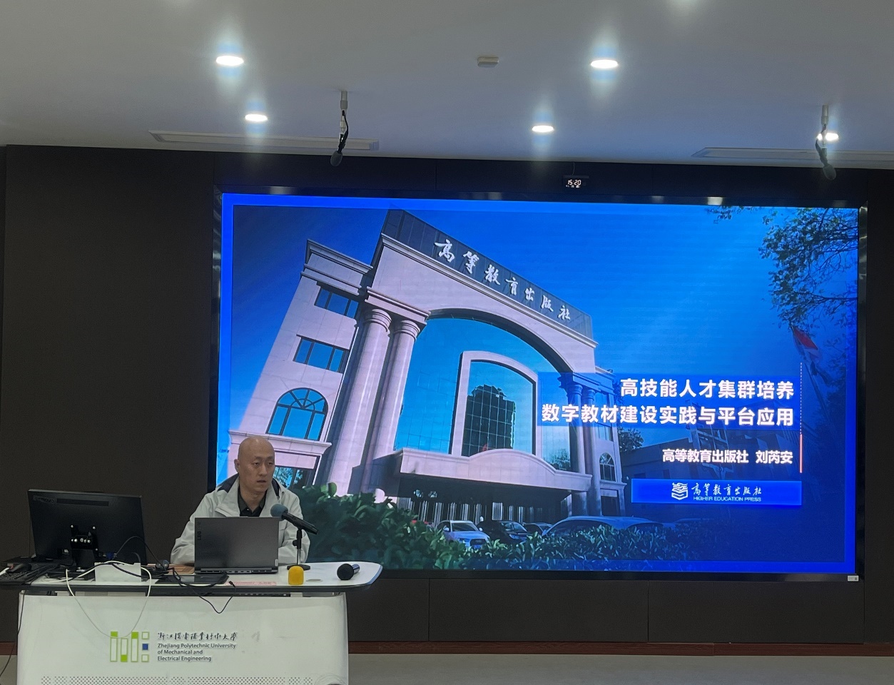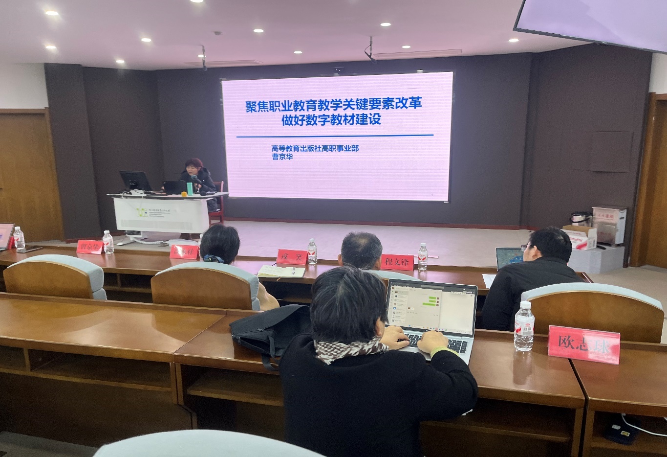 为深入推进学校数字教育资源建设,全面提升教师数字化教学应用能力,助力教育教学模式创新与人才培养质量提升,12月3日下午14点,我校在滨江校区5号楼5号厅隆重举办“数智赋能・课材融合:职教数字教材、资源库与在线课程建设实践”专题讲座。讲座由教务处副处长蒋立正主持,特邀高等教育出版社(以下简称“高教社”)高职事业部数字教材项目部负责人、编审曹京华,智慧职教发展中心资源部高级编辑李伟红,高职事业部数字教材项目部编辑刘芮安担任主讲嘉宾。各教学单位教学负责人、教学主管及骨干教师代表90余人参会,以专业引领推动教学理念革新与实践能力提升。