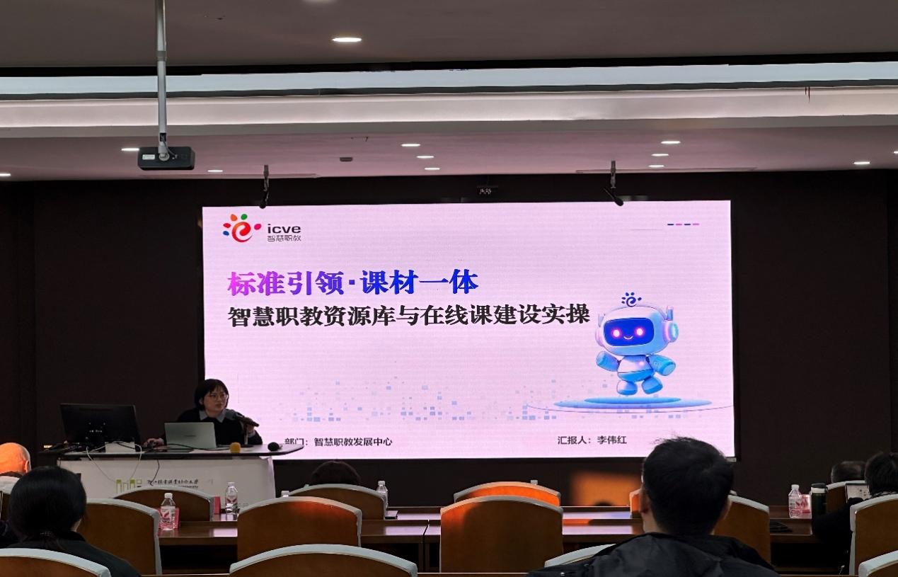 李伟红专注于高技能人才集群培养计划各领域资源库和在线课程研发工作,以“标准引领・课材一体:智慧职教资源库与在线课程建设实操”为核心内容开展讲解。她深入解析了智慧职教资源库的建设逻辑、在线课程开发的实操要点与行业标准,强调教学资源建设需紧扣产业需求与教学实际,实现课程与教材的协同创新,为我校资源库与在线课程规范化建设提供了专业指导。