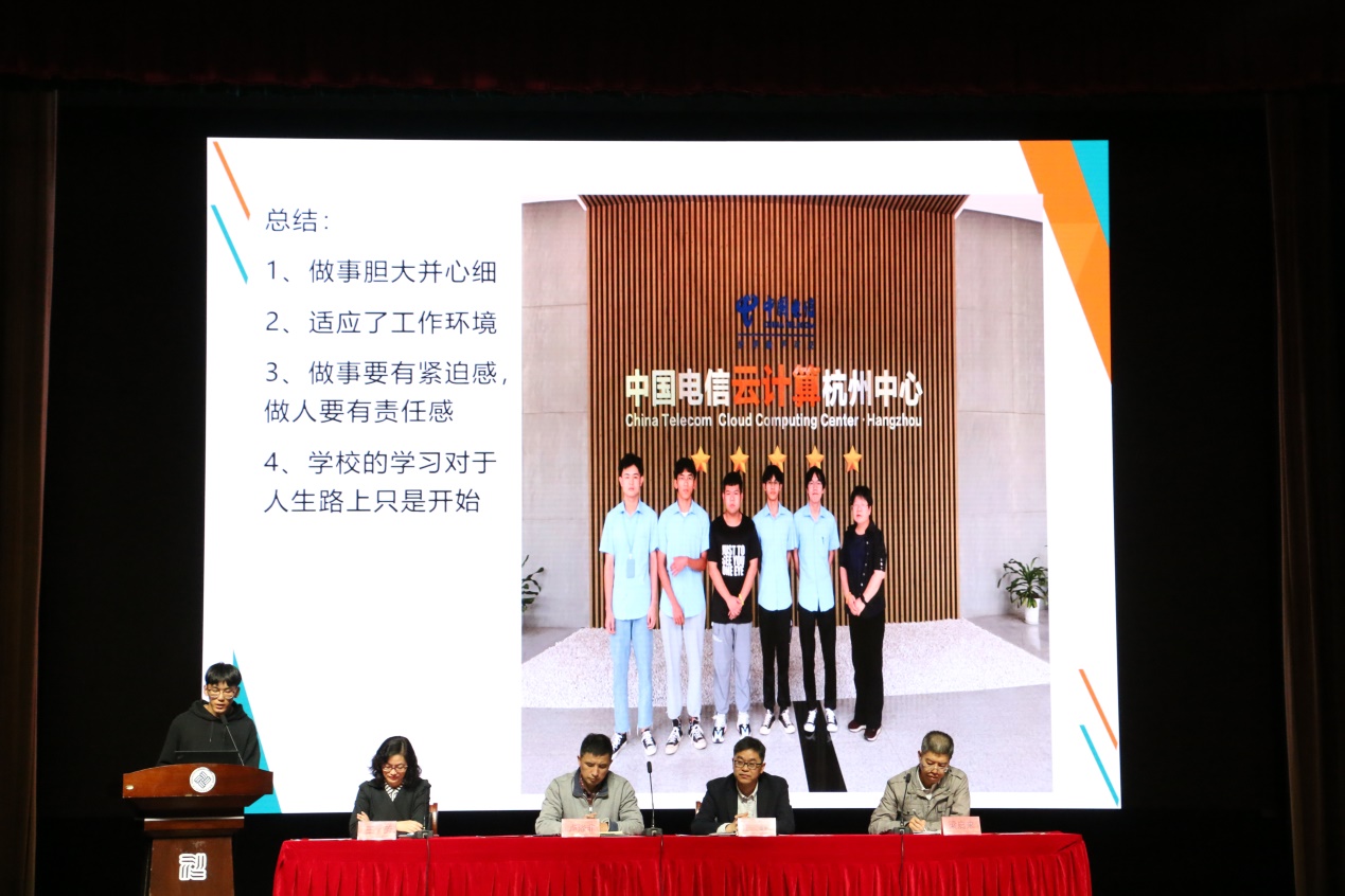 梁启来老师首先对2018级学生专业顶岗实习情况进行了总结。随后,计算1804班叶超凡、网络1802班葛屾鈜、物联1801班蒋成浩等三位同学将自己在面试、实习过程中的心得体会、工作经验与在场同学进行了交流,给了与会同学很大的启迪,对于即将开始的就业实习很有帮助。