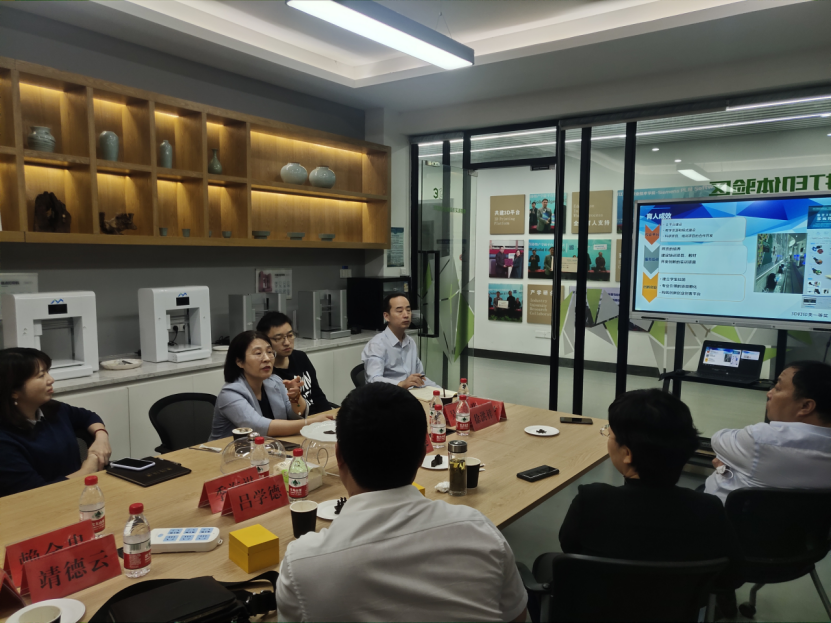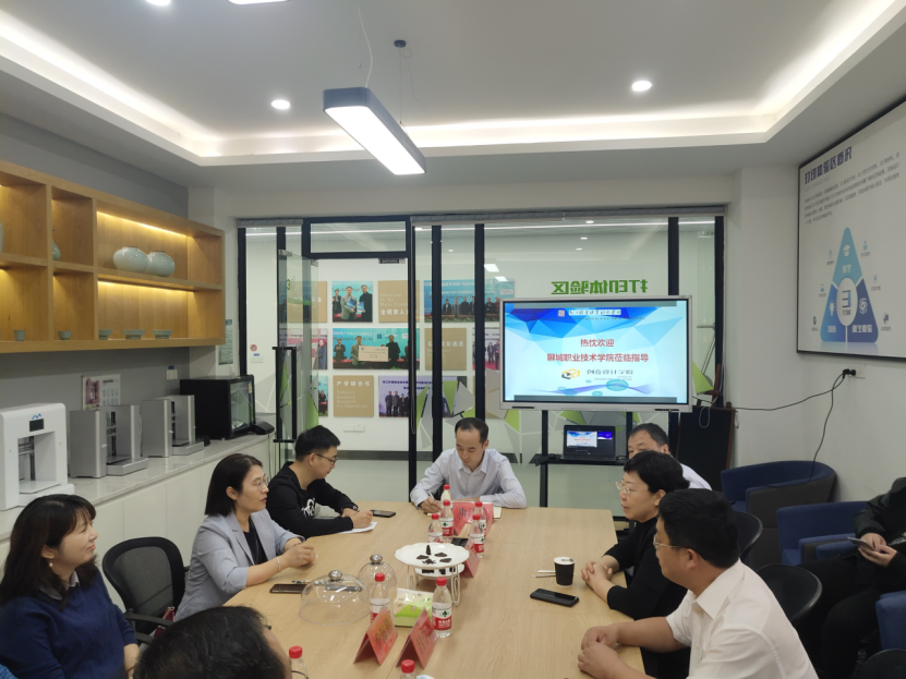邓委员首先对靳书记一行的来访表示热烈的欢迎,并向来访客人介绍了我校依托先进技术、开展校企合作、培养适合满足企业需求人才的办学理念,详细介绍了我校3D打印应用技术实训基地建设的思路和定位、已经取得的成效、基地的特色和创新等内容。