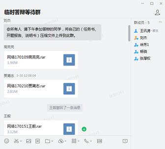 毕业设计是对学生专业知识掌握的深度、运用理论结合实际处理问题的能力、书面及口头表达能力的综合考核。为保证毕业答辩工作的顺利进行,从3月中旬起,分院多次组织专业负责人召开会议,讨论网络答辩的可行性和具体实施办法。为使网络答辩做到规范、公开,分院制定了《2020届毕业设计网络答辩细则》。细则规定:一是使用“企业微信”和“QQ腾讯课堂”线上形式进行;二是由答辩组长建群,逐个邀请学生进群答辩,进行作品展示、工作说明和回答老师提出的问题。三是保证质量,答辩过程严格把控;保留每一位学生3次及以上网络答辩过程截图资料;各专业保留一定比例的答辩过程视频资料。四是答辩完成后,图片及视频资料整理、上交分院留档。