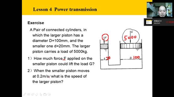 (郁元正老师用英汉双语进行《液压与气压传动》远程教学)