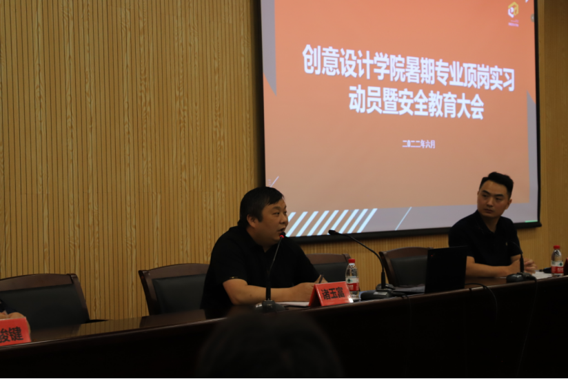 为了进一步完善我创意设计学院2020级学生顶岗实习工作,引导学生做好顶岗实习准备,创意设计学院于6月1日在5号楼2号厅召开了2020级学生专业顶岗实习动员暨安全教育大会。创意设计学院党总支书记张荣路、创意设计学院副院长季海祺、学校保卫处副处长诸玉富、友邦集成吊顶股份有限公司人力资源处经理王骏健及各专业教研室主任出席了大会,大会由创意设计学院产学办主任宋涛主持。