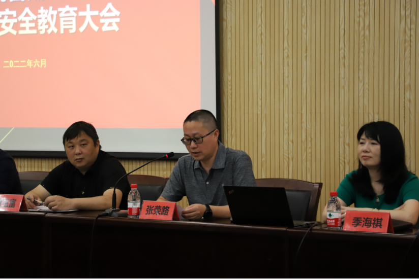 随后学校保卫处副处长诸玉富就安全事项进行发言,强调了学校对本次顶岗实习工作的重视、对学生自我安全意识的保护,举多例说明学生应增强防骗意识,希望大家调整好心态的同时加强自身防范,迎接此次实习。希望大家在接下来的实践活动中能够坚持、坚守并融入企业当中,要求同学们要学安全知识、掌握安全能力、强化安全意识,从而切实保障个人财产安全和生产实践安全。同时在日常顶岗实习的过程中要注意远离毒品,避免被骗,遵守交通法律法规,保证自己人身安全。
