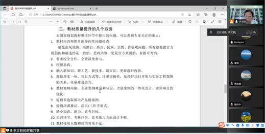 李文轶副编审从国规、省规教材申报重点与教材质量提升方向两方面,从业内人士的角度详细地为与会教师梳理了教材编写及申报过程中的注意事项。李文轶副编审在分享中鼓励教师积极探索新专业教材、职教本科教材、数字化教材等尚鲜有涉足的新领域;并特别提醒教师在出版周期加长的当下早动工、早准备,做好做足调研和反馈征集工作。