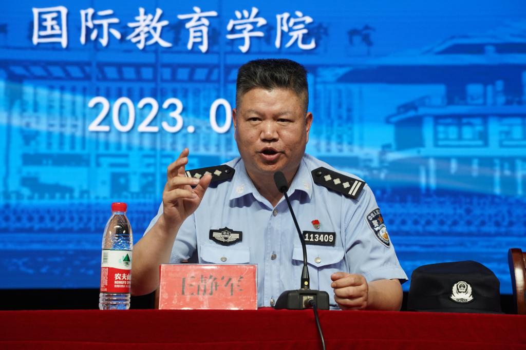 随后,滨江高新派出所王静军警官为全体学生做安全教育。通过列举身边发生的真实案例,从诈骗、交通、食品、网络和企业现场生产安全等几个方面,要求全体同学树立风险防范意识,提高安全防范能力,做自己安全第一责任人。