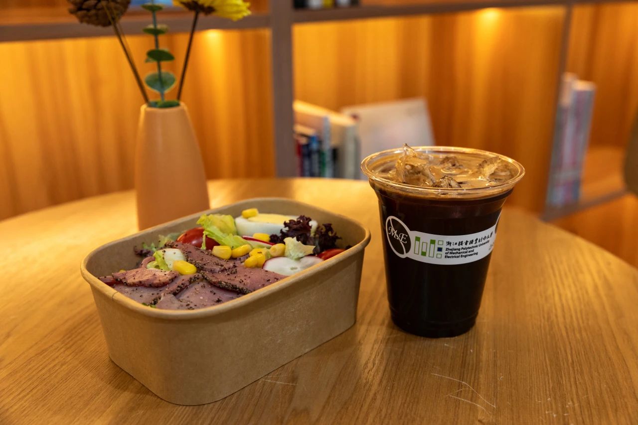 浙江机电职业技术大学校园咖啡吧近日也特别推出轻食沙拉。沙拉精选生菜、紫甘蓝、鸡胸肉、牛肉等新鲜食材,低脂健康,营养多元,师生再也不用担心吃饱有负担啦!再配上一杯美式咖啡,以更充沛的精力工作和学习,尽情享“瘦”!