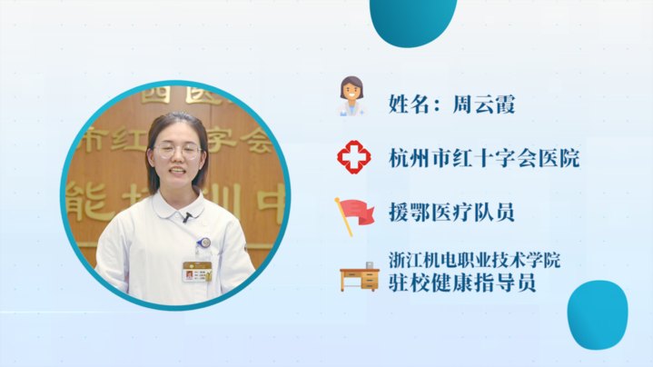 开学后的疫情防控,更需要同学们日常的重视。最近,浙江机电职业技术学院请来杭州市红十字会医院的援鄂医疗队员、该校驻校健康指导员周云霞,为大家带来《健康安全说》。