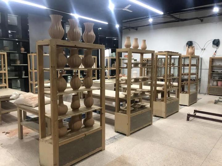 展品陈列室拥有40余个独立玻璃展柜,进行大师作品、优秀毕业生作品及学生毕业设展示,主要开展中国陶瓷史、陶瓷基础、陶瓷造型艺术、陶瓷釉料等专业课。