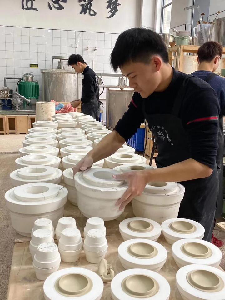 浙江机电职业技术学院传统手工艺陶瓷实训基地使用面积约为1200平方米,由综合成型室、手作室、烧成室、展品陈列室及大师工作室五大功能区组合而成,能同时容纳200余名学生进行教学与实训创作。拥有泥料练制、高压注浆、异型陶瓷滚压成型机、拉坯机、车模机、泥板机、练泥机、石膏真空搅拌机、打浆机、球磨机、喷釉台、燃气窑炉、全自动控温电窑炉等全套陶瓷生产烧制设备。开展陶瓷工艺基础、器皿成型、模具成型、陶瓷艺术品设计与制作、日用陶瓷品设计与制作、现代陶瓷艺术设计、陶瓷首饰设计、毕业综合实践等项目的实训。旨在培养具有良好的动手能力及职业素养,具备较强的艺术创新精神和审美能力,掌握陶瓷艺术的基础知识和成型工艺,适应陶瓷生产企业设计制作、管理运营第一线需要的应用型、高技能型专业人才。