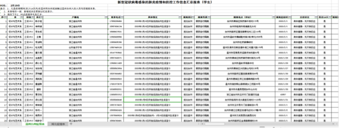 全系学生1105名学生,为了保证每天获取最真实、及时得学生动向,辅导员、班主任们放弃个人休息时间,24小时投入工作状态,使信息摸查工作关注到每一位同学,建立一人一表,一人一档信息,针对个别特殊情况的学生做到每天回访掌握情况并做好记录,数据排查做到了“零死角、零盲区、零疏漏”,确保了数据上报及时、准确。