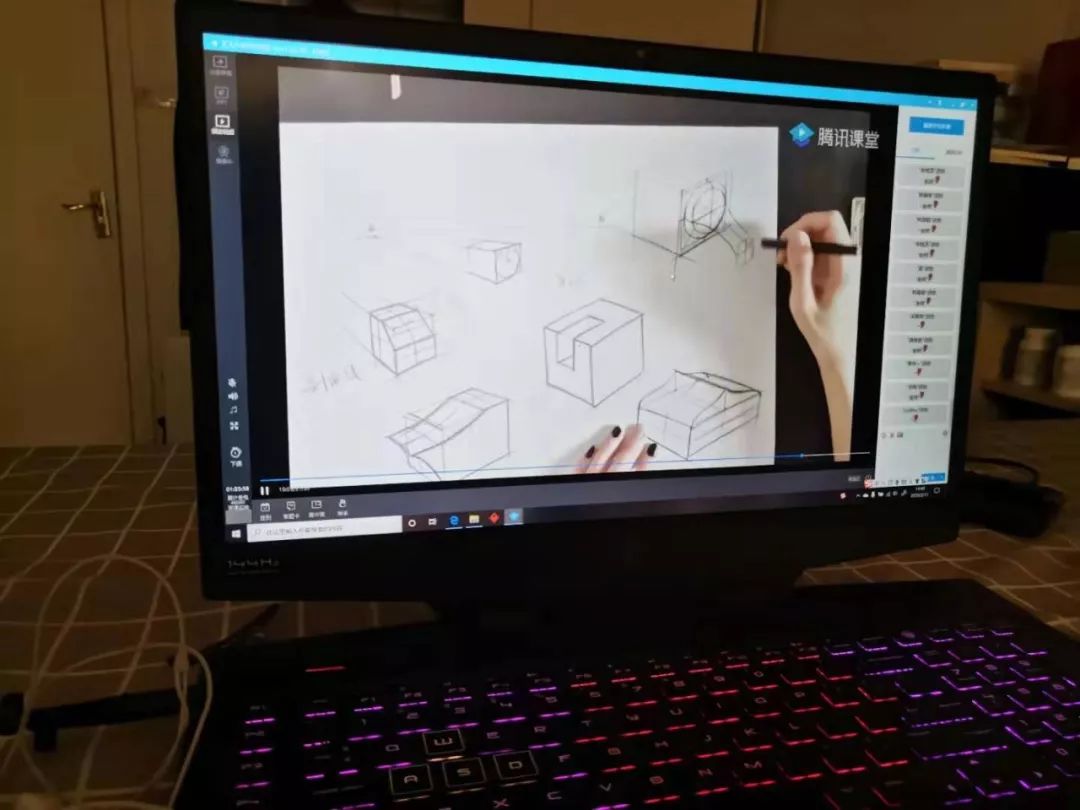 设计与艺术系喊出“线上教学,我们是认真的”的口号,王芃卉老师录制手绘教学微课利用腾讯云课堂开展线上教学,远在新疆的刘丹老师克服“时差”开展显示屏教学工作。