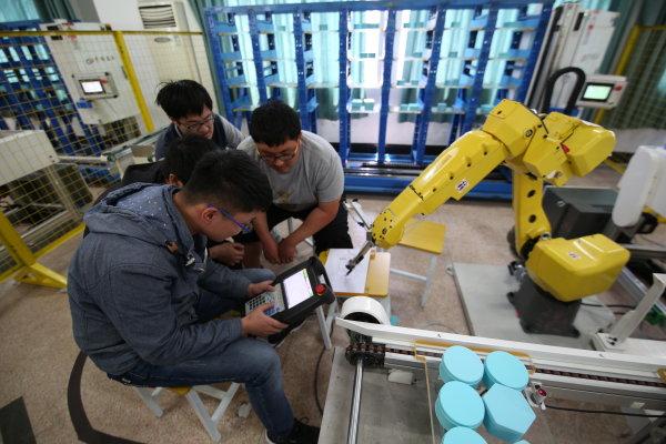 杨益康所说的智能控制技术基地又被称为“迷你小车间”,由5个单项和一个综合共6间实训室组成, 模拟网络化、智能化、自组织、个性化的“工业4.0”生产设备和模式,实行开放式管理,学生可以在安全前提下随时使用。“我们在学校里学到的智能控制技术是比较超前的,而且是整个产业链各环节都学。”杨益康的自信不是个例,在浙机电,毕业生超90%在当地就业,50%以上在行业龙头企业就业,用人单位满意度超85%,学校和他同届的毕业生薪酬收入普遍在5000元以上。