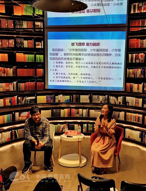 今年是五四运动100周年,也是中华人民共和国成立70周年。4月30日,习近平总书记在纪念五四运动100周年大会上发表重要讲话。五四传统、做新时代的奋进者、开拓者、奉献者,成为无数高校学子共同的心声。浙江机电职业技术学院思政老师将传统的思政课堂搬到了被网友誉为“中国最美书店”的钟书阁,在缕缕书香中重启和激活五四话语,铭记光荣岁月,弘扬民族精神。