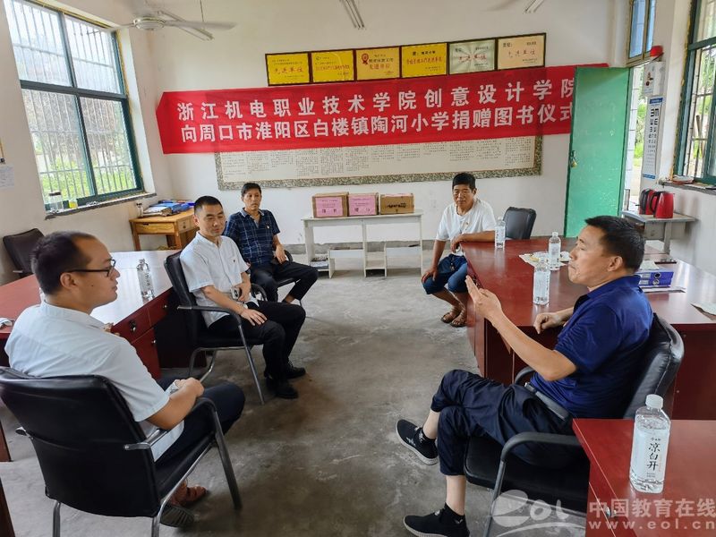 2021年7月22日上午9时,浙江机电职业技术学院创意设计学院党总支心系河南洪水灾情,派员赴河南省周口市淮阳区白楼镇陶河小学开展灾情慰问与图书捐赠活动。共青团淮阳区委副书记段远鹏、白楼镇中心校党支部副书记、副校长曾祥军、白楼镇中心校党支部宣传委员、陶河小学校长刘炜、陶河小学副校长王义强、陶河行政村主任常勇以及学校创意设计学院党总支委员刘博盛出席了慰问捐赠活动。