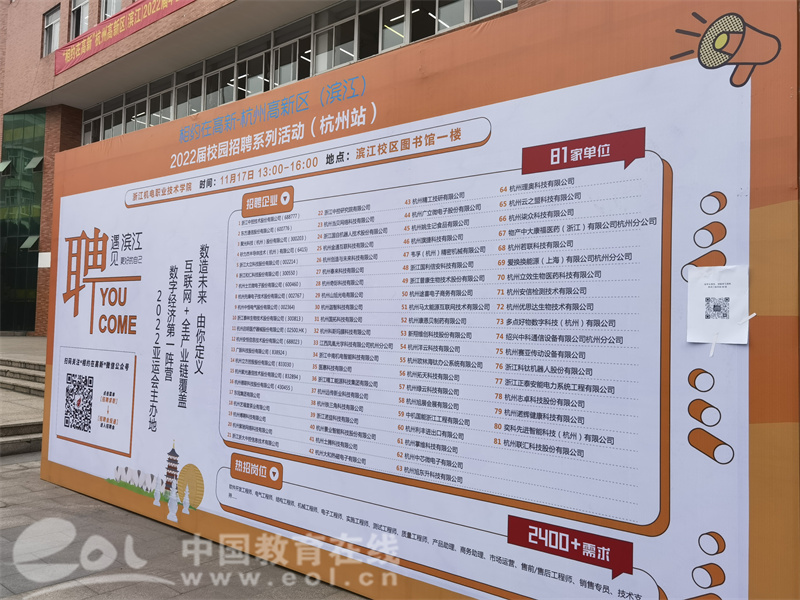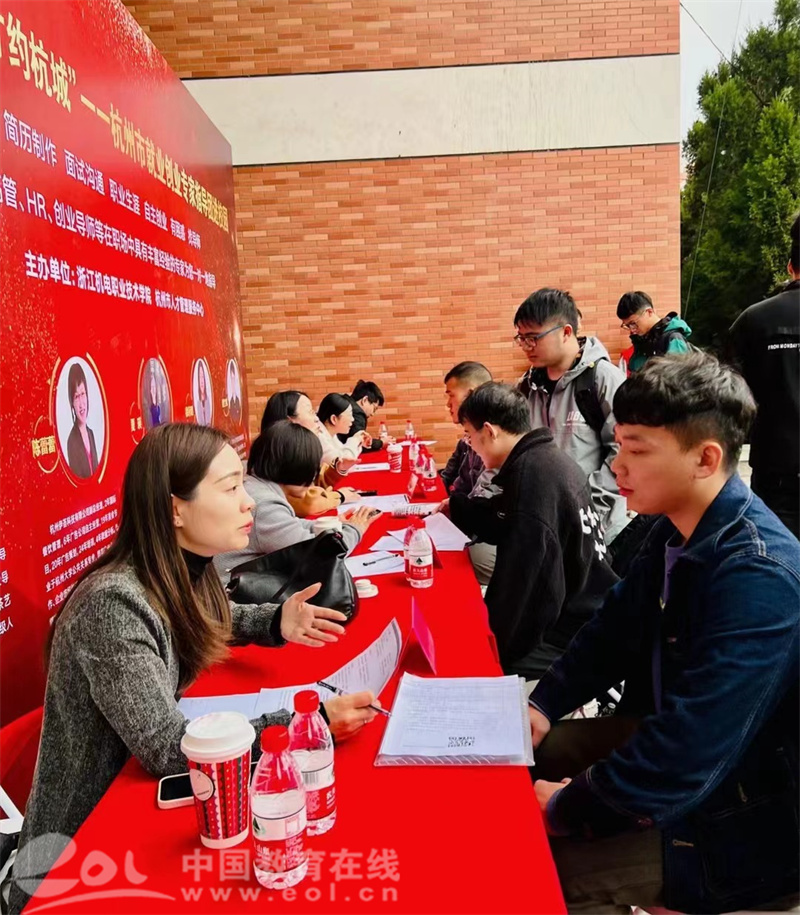 11月17日,“相约在高新”2022届毕业生招聘会在浙江机电职业技术学院(下简称“机电学院”)举行。前述这一幕,就发生在这场招聘会上。