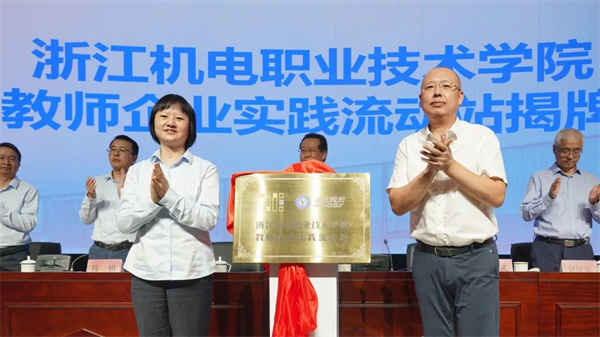 汤兆武、高玲为浙江省职业教育集团教师企业实践流动站揭牌。