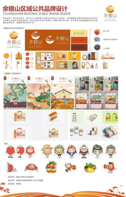 师生们还结合当地文化与产品特色,挖掘自身内涵,以柿子的橙红色为主色调,设计具有当地地域特色和文化底蕴的品牌符号,孵化衍生产品,增加农产品附加值,持续提升余粮山村的知名度。