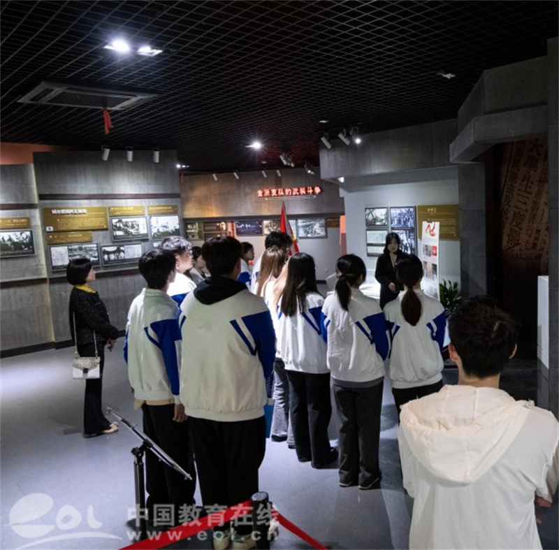 在纪念馆的革命史展厅,机电学院师生在讲解员的带领下,聆听英烈事迹,缅怀革命先烈。