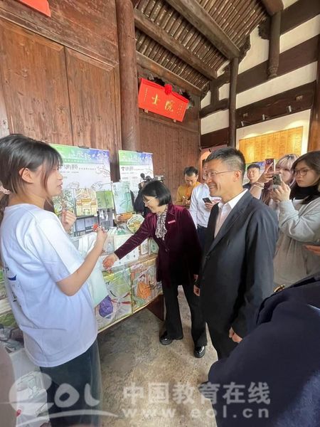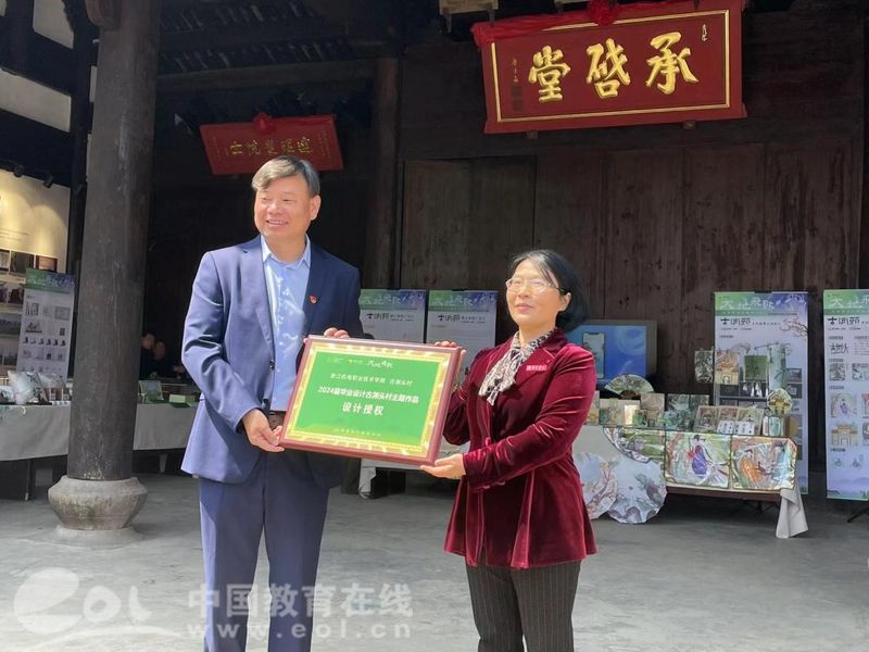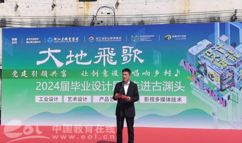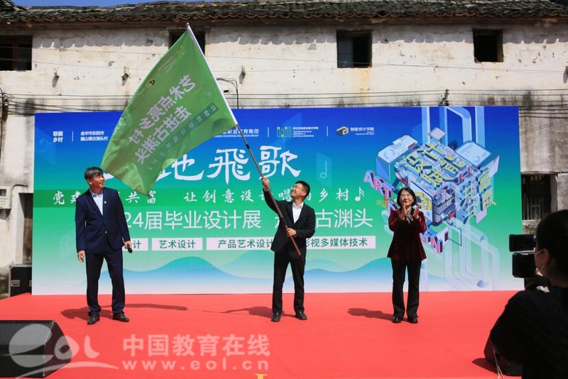 中国教育在线浙江站讯 (记者 白菁洁 通讯员 刘博盛)为深入贯彻党的二十大精神,认真贯彻落实习近平总书记“把论文写在祖国大地上”的重要指示精神,浙江机电职业技术学院创意设计学院以“大地飞歌-让创意设计唱响乡村”为主题,与金华市古渊头村、衢州市灰坪乡、丽水市联丰村共同举办2024届毕业设计展乡村巡展。4月9日,乡村巡展第一站在东阳市巍山镇古渊头村拉开帷幕。浙江机电职业技术学院相关领导、乡镇领导与村民代表、创意设计学院相关教师及学生出席了本次活动。