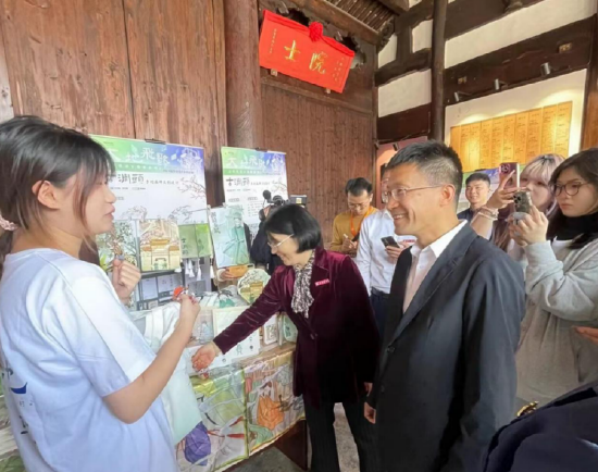 浙江机电职业技术学院党委委员、创意设计学院院长邓劲莲致辞。邓劲莲表示,此次毕业设计展乡村巡展,学院充分发挥资源优势、专业优势和人才优势,引导师生将教学实践、社会服务根植于广阔农村,努力探索职业教育服务和美乡村建设的新模式、新路径,通过学生们的创新设计,为乡村振兴战略注入新的活力。