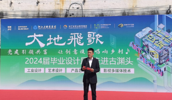 浙江机电职业技术学院创意设计学院以“大地飞歌-让创意设计唱响乡村”为主题,与金华市古渊头村、衢州市灰坪乡、丽水市联丰村共同举办2024届毕业设计展乡村巡展。4月9日,乡村巡展第一站在东阳市巍山镇古渊头村拉开帷幕。浙江机电职业技术学院相关领导、乡镇领导与村民代表、创意设计学院相关教师及学生出席了本次活动。
