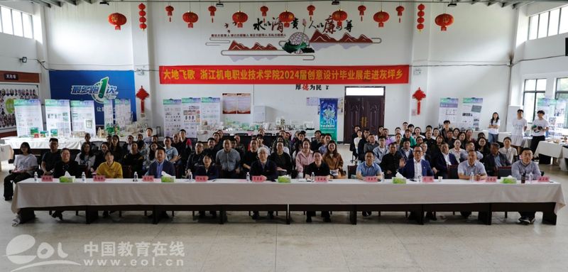 中国教育在线浙江站讯 (记者 白菁洁 通讯员 刘博盛)15日上午10点多,在衢州市灰坪乡灰坪村的文化礼堂里,浙江机电职业技术学院创意设计学院“大地飞歌-让创意设计唱响乡村”主题毕业设计展乡村巡展火热进行中。浙江机电职业技术学院校长贺星岳、衢州市衢江区灰坪乡党委书记童媛媛、浙江机电职业技术学院党委委员、创意设计学院院长邓劲莲、衢州市人才和就业管理中心副主任谭新中、衢州市衢江区灰坪乡党委副书记、乡长袁志斌、衢江区农业农村局党委委员、副局长吴锡倍、衢江区其他相关领导、各乡村代表、创意设计学院党总支书记符强、创意设计学院副院长季海祺及其他相关师生出席了本次活动。