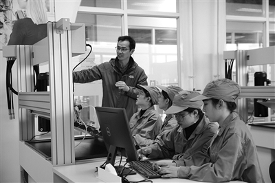 图为浙江机电职业技术大学智能制造学院教师赵传强将企业真实项目引入实训教学的场景。