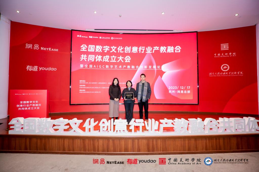 全国数字文化创意行业产教融合共同体常务副理事长单位12月17日,全国数字文化创意行业产教融合共同体成立大会暨全国AIGC数字艺术产教融合创新发展论坛在杭州举行。我院受邀参与该共同体,并被推选为常务副理事长单位,校党委委员、创意设计学院院长邓劲莲参加了成立大会及一系列活动。该共同体由网易有道、中国美术学院和湖南大众传媒职业技术学院牵头,联合行业企业、高等院校、科研机构、行业协会和上下游企业等共同参与成立...
