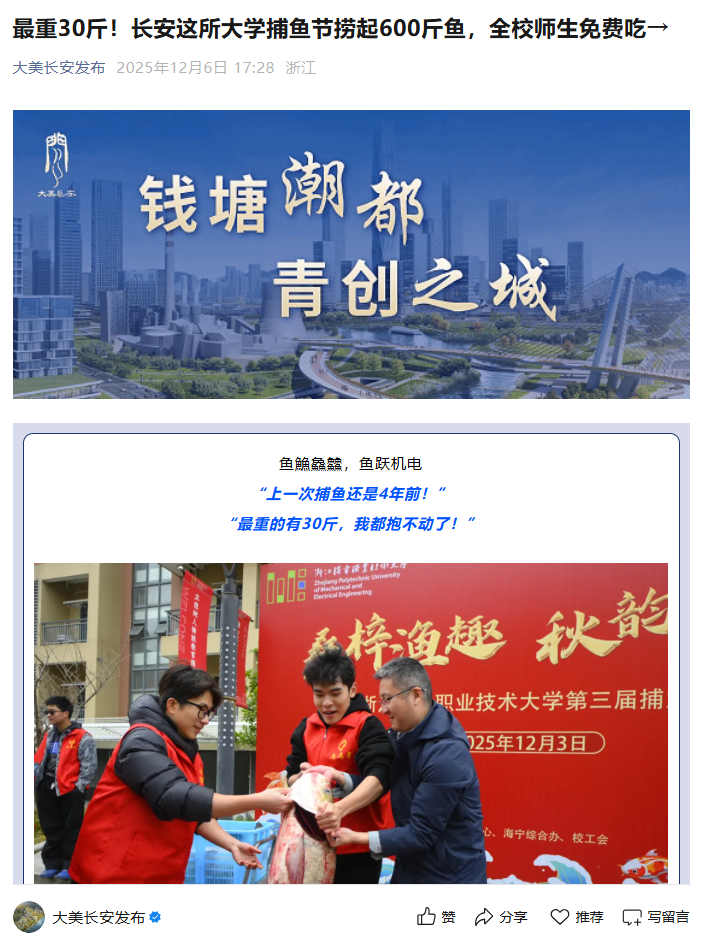 [大美长安发布]最重30斤!长安这所大学捕鱼节捞起600斤鱼,全校师生免费吃→