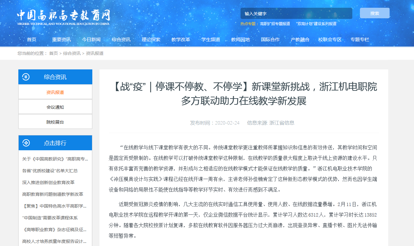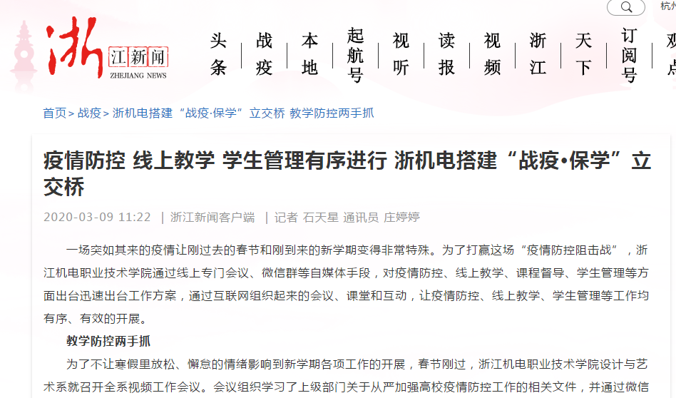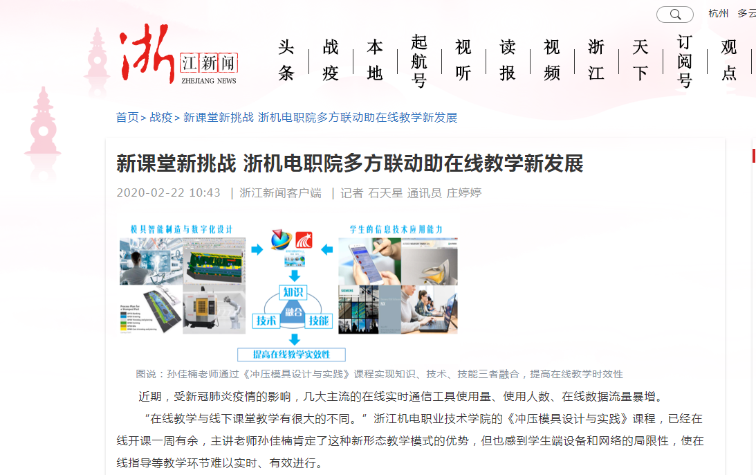 [小时新闻客户端]疫情防控期间,浙江机电职业技术学院施行“一停”与“五不停”,把课程搬上云端